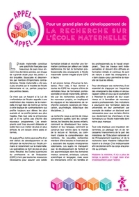 L'appel Pour un grand plan de développement de la recherche sur l'école maternelle