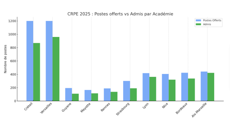 Quant à la Guyane, privée de concours supplémentaire, la situation y est particulièrement alarmante : seulement 27 % des postes sont pourvus en 2025 (contre 24 % en 2024), malgré la baisse du nombre de postes proposés.