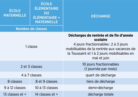 La décharge est totale pour les écoles à partir de 5 classes.