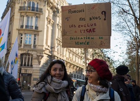 Afin d'obtenir le versement de l'ISAE aux enseignants du premier degré qui ne la touchent pas ou l'assurance pour chacun d'obtenir une revalorisation équivalente, le SNUipp-FSU proposait une journée d'action nationale des « exclus de la revalorisation » mercredi 30 novembre. Coordonnateurs ULIS, enseignants référents, enseignants de SEGPA, d'EREA, coordonnateurs REP, enseignants en prison ont répondu à cet appel en se rassemblant à Paris devant le ministère ou en participant à des initiatives départementales.