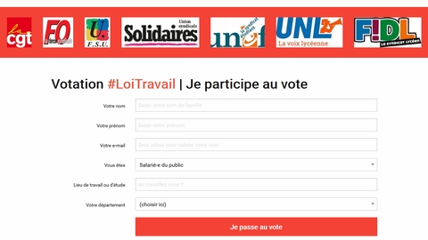 L'intersyndicale CGT, FO, la FSU, Solidaires, l'UNEF, l'UNL et FIDL organise une votation citoyenne dans les entreprises, les administrations et les lieux d'étude. Le SNUipp-FSU appelle les enseignants des écoles à participer massivement à ce moment de démocratie en votant en ligne ou avec les bulletins « papier ».