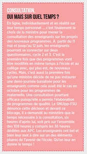 43 pages pour le cycle 2, 47 pour le cycle 3 sans compter les liens hypertextes et les annexes, une vingtaine de pages supplémentaires : ce projet de programmes est copieux. Le volet 3, celui qui doit guider les enseignants pour la mise en œuvre, apparaît parfois le plus confus et le plus difficile d'accès. Ces programmes doivent plus clairement indiquer les choix de ce qui doit être enseigné, mais également des attendus de fin de cycle clairs, en nombre limité et des repères de progressivité avec un niveau de détail adapté.