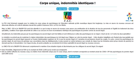 Le SNUipp et le SNES ont donc lancé une pétition pour demander l'alignement des indemnités des psychologues sur le plus haut niveau.